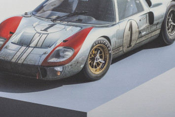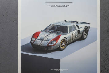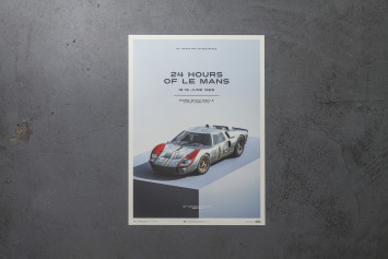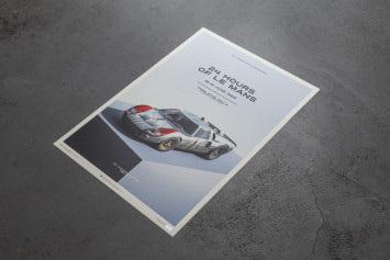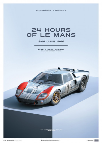 Poster vznikl k připomenutí 50. výročí dominantního vítězství Fordu v Le Mans.