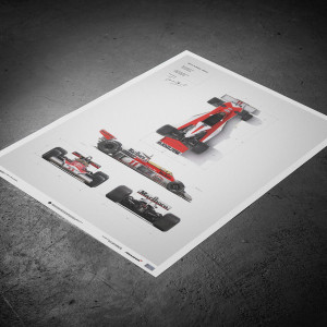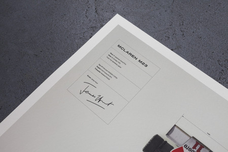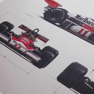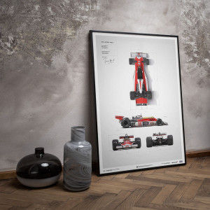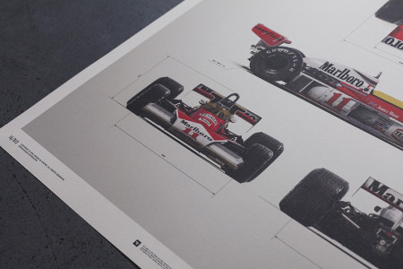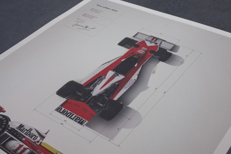 Jedinečný poster připomínající výročí 40 let od jediného titulu Mistra světa, kterého James Hunt dosáhl v roce 1976. Niki Lauda za ním zůstal o jediný bod.