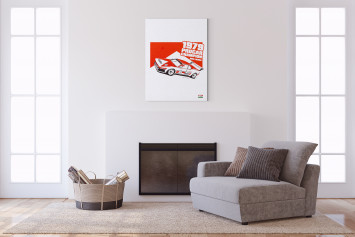 Obraz technikou tisku na dibondové desce s motivem Niki Laudi jako vítěze Procar šampionátu roku 1979.