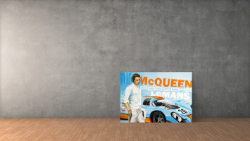 Akrylový obraz zobrazující filmaře, producenta, jezdce Steva McQueena.