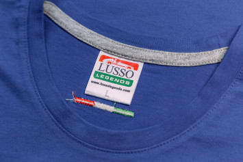 Bavlněné tričko s vítězným autmobilem BMW 635 CSi Hartge v modré barvě, metoda sítotisku.