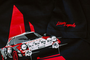 Rally ikona sedmdesátých let Lancia Stratos jako potisk na tričko černé barvy metodou sítotisku.