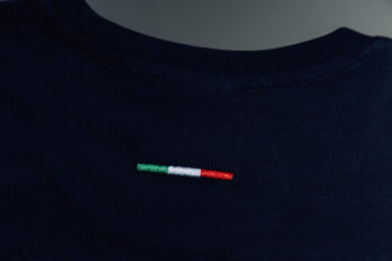 Tričko v námořnické modré s motivem vítězství Nelsona Piqueta s vozem Brabham BT 49C, metoda sítotisku.