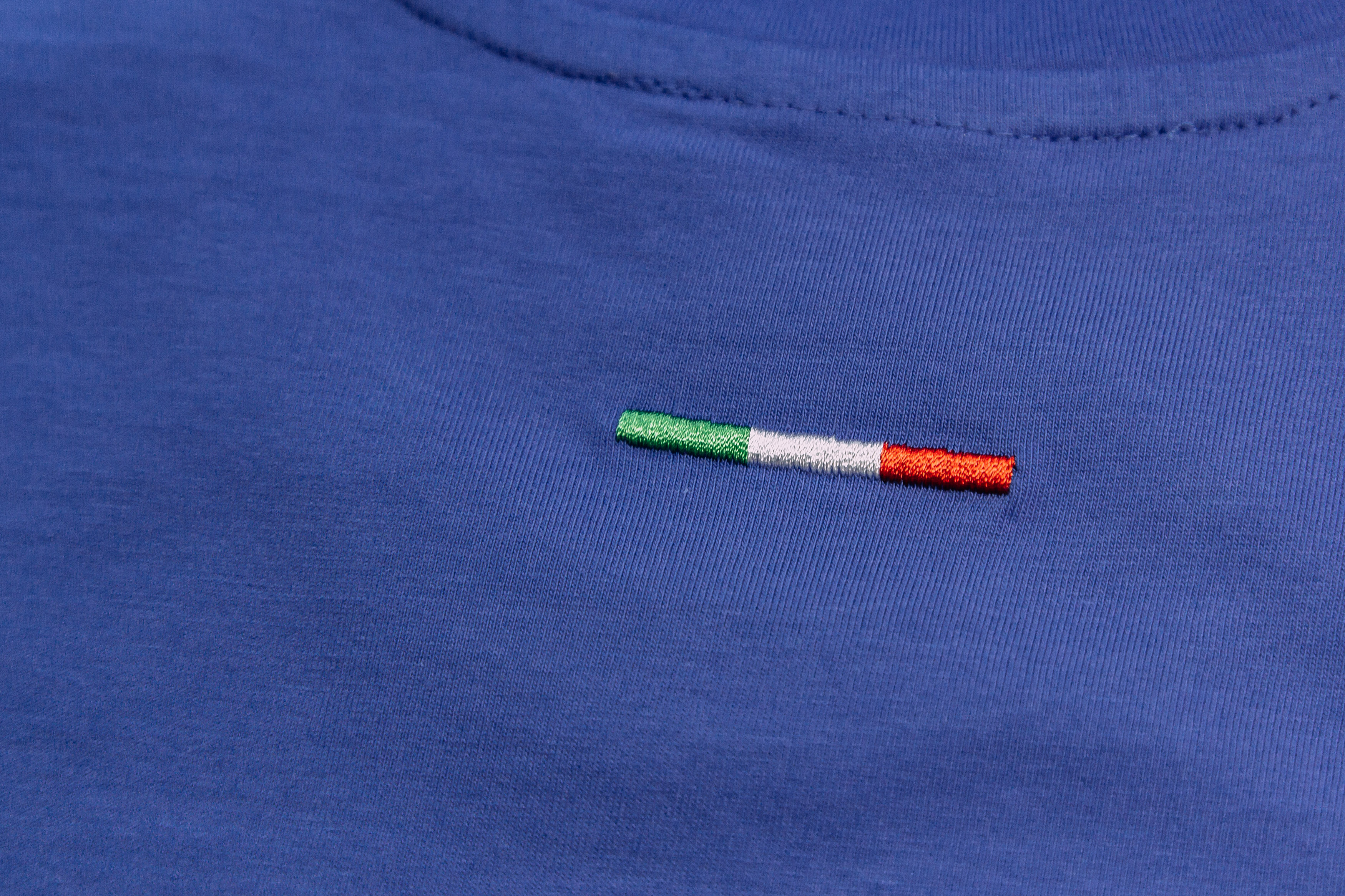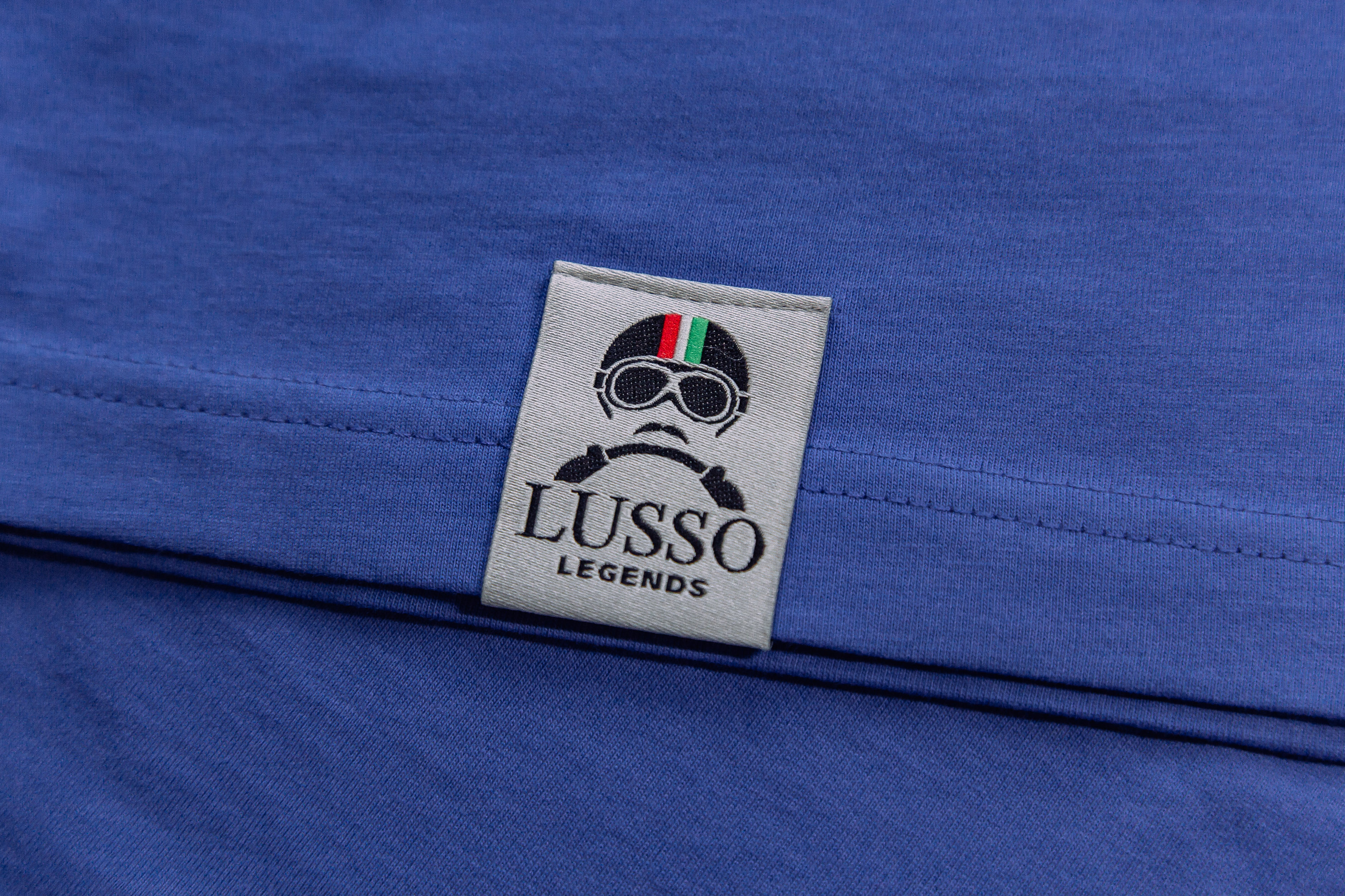 Bavlněné tričko s vítězným autmobilem BMW 635 CSi Hartge v modré barvě, metoda sítotisku.