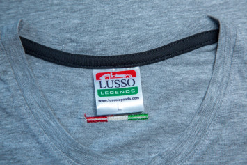 Vůz americké automobilky Ford na bavlněném tričku šedé barvy metdou sítotitku.