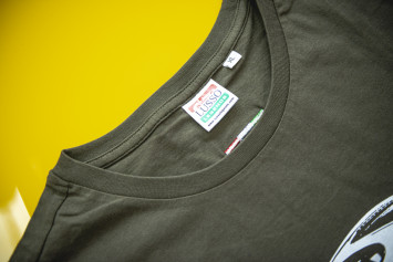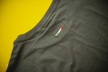 - Drobná italská trikolora vyšitá na zadní straně trička.